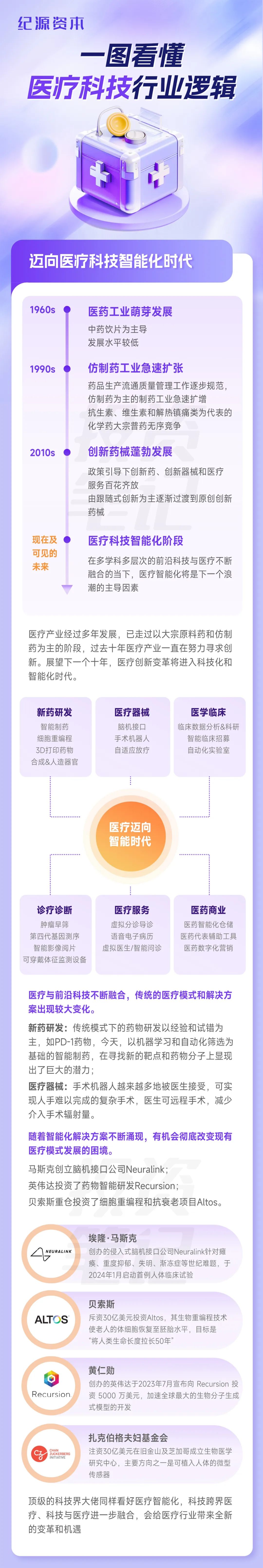 一直以来,纪源资本都重点关注工业科技、企业服务、环境与材料、医疗科技、消费科技等多个领域,新年伊始,我们将用五篇深度分析文章全面列出对各大领域的宏观趋势研究与投资决策判断,以此和大家一起探讨未来可能发生的变化。本文为系列第四篇,重点讨论 #医疗科技 。