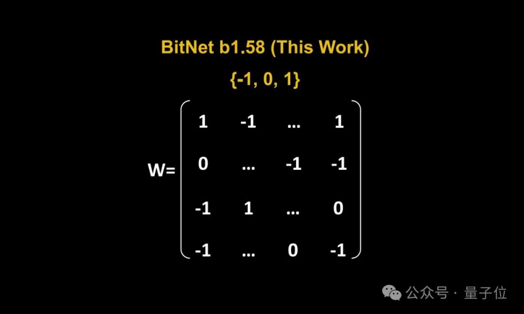 将传统以16位浮点数(如FP16或BF16)形式的存储,统统变成了三进制,也就是 {-1, 0, 1}。