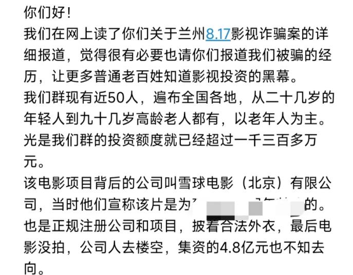 每日经济新闻联合兰州市公安局发起对“8•17”影视投资诈骗案件线索的收集工作后,收到的读者邮件