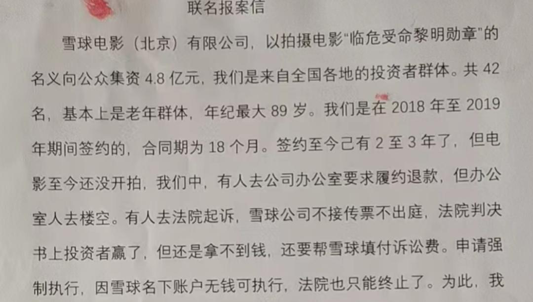 我们群里,老年人居多,年纪最大的89岁。有一对老年夫妻,投资《黎明勋章》96万元,合同到期后发现拿不回来钱,那个妻子郁郁寡欢,已经生病去世了。