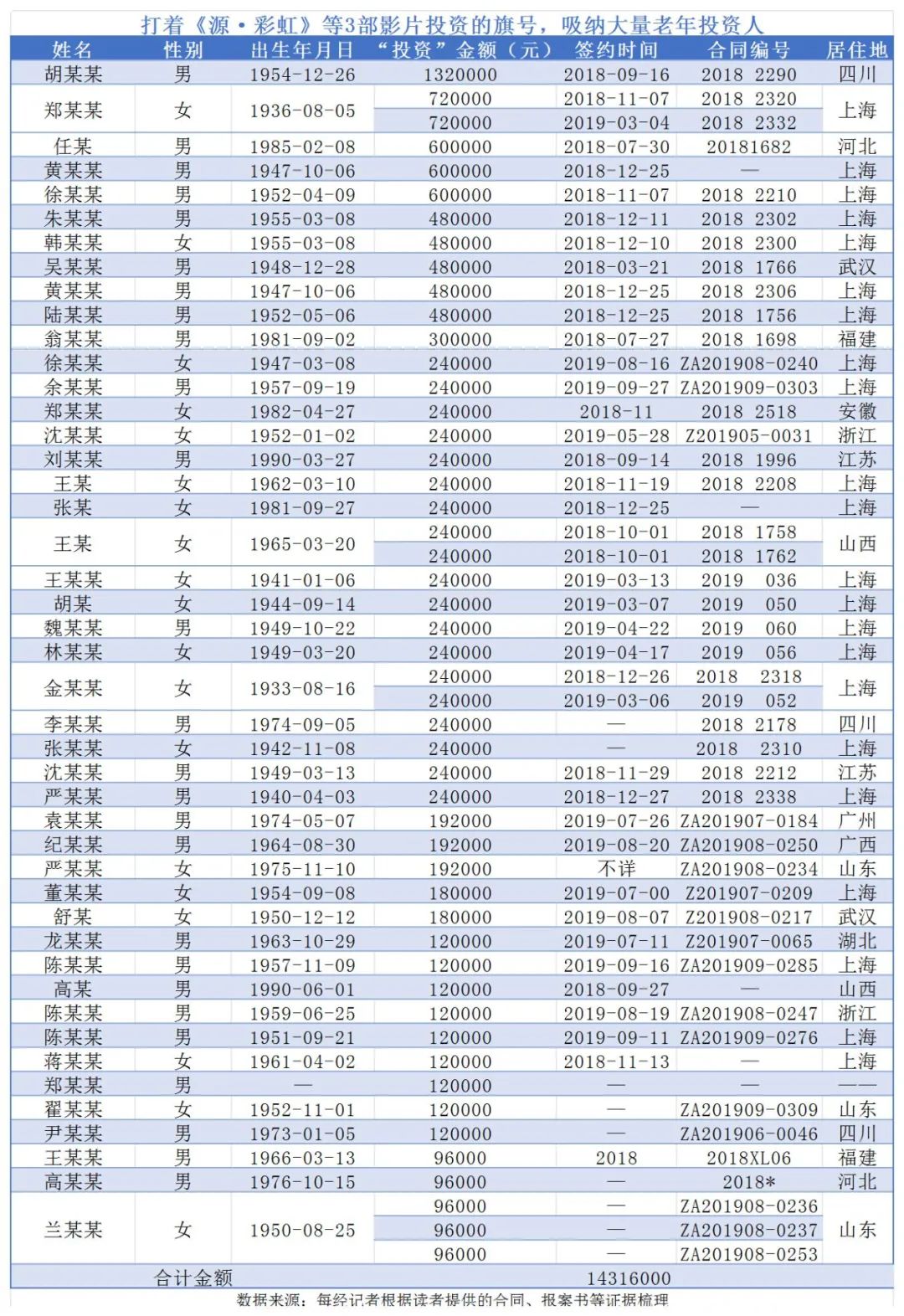还有一个73岁的退休人员刘丹(化名),她之前是一名高级工程师,2019年7月先后花了70多万元买了《源·彩虹》影片0.24%的投资收益权,后来又花18万元买了《黎明勋章》的份额。