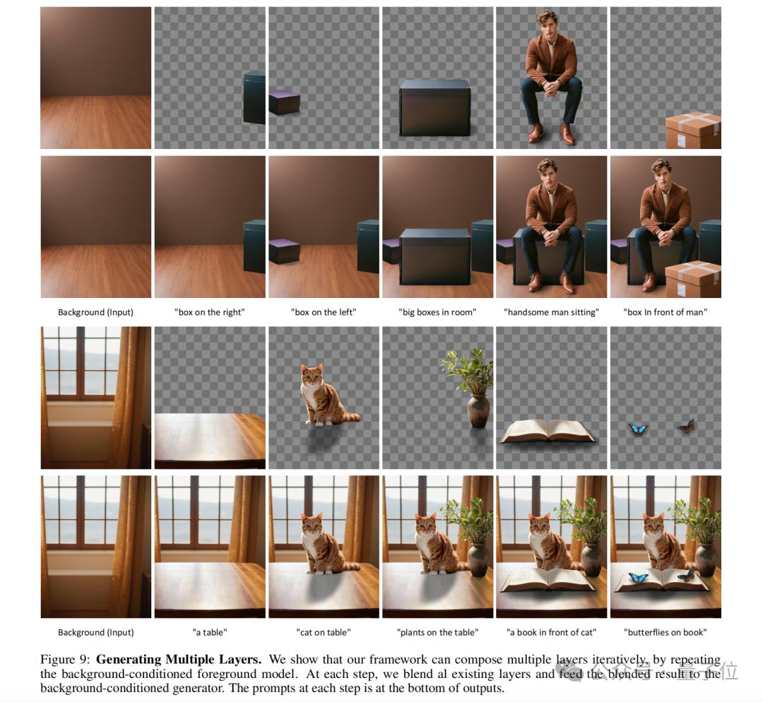 潜在透明度的概念还可以扩展到生成多个透明图层,以及与其他条件控制系统结合,实现更复杂的图像生成任务,如前景/背景条件生成、联合图层生成、图层内容的结构控制等。
