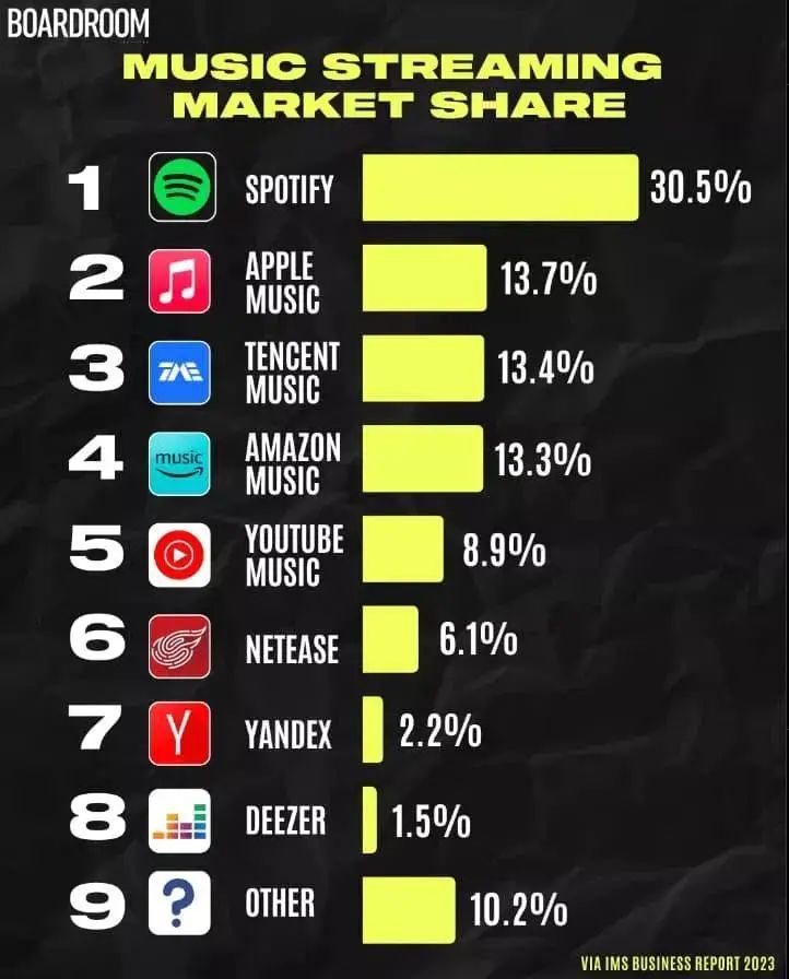 也正是订阅制和把近 70% 的收益购买版权,才造就了 Spotify 在流媒体音乐平台的霸主地位,源头活水来的持续收益+有舍才有得的大手笔投入=让平台走向成功的一种方式。
