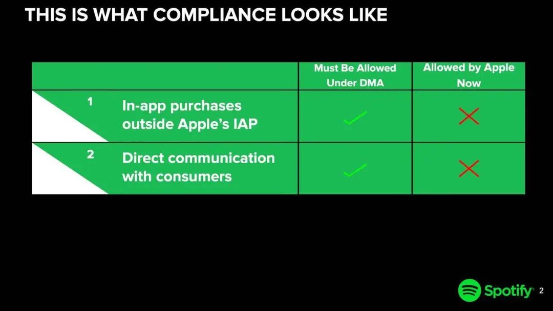 并于 2019 年 3 月正式向欧盟反垄断监管部门提起投诉,指控苹果在流媒体音乐市场竞争中有垄断的嫌疑:Spotify 发现它们无法通过应用通知,向 iOS 的用户推送除 App Store 外更便宜的付费订阅方案。