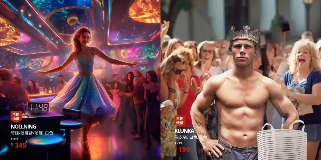 这两则广告有品牌历史的 buff,多次因为广告出圈的台湾宜家,则凭借创意再次稳定发挥,以童话故事为原型,推出了 AI 海报。