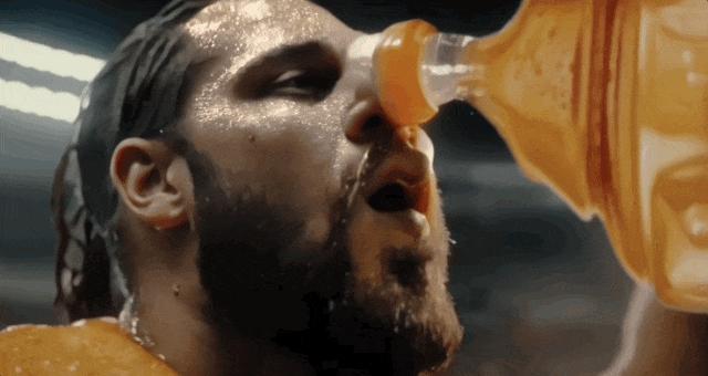 这则叫作《Field of Fake》的广告,用了先抑后扬的手法,前半部分故意由 AI 粗制滥造,运动员们身体变形五官乱飞,喝饮料时嘴还会和瓶口粘连,后半部分则是实拍,强调产品用料、口味、功效的真实。