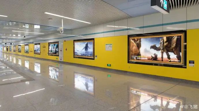飞猪在地铁站投放的「这个五一玩什么」系列海报,展现 AI 眼里不同国家和主题的风景。