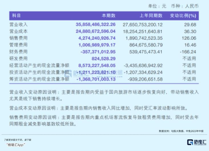 2023年上半年,中国中免销售费用率达到了11.92%,同比上升了5.08%,导致销售费用也达到了达到43亿元,同比增加126%。