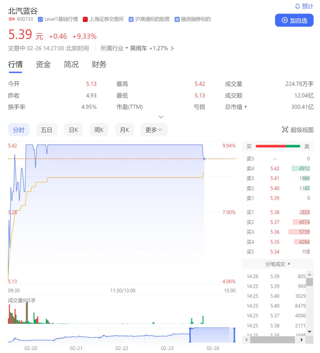 汽车以旧换新,推动二手车市场发展的同时,自然也会提高新车销量。因而会议过后,整个汽车板块股票集体飙升,江淮汽车、江铃汽车、长城汽车等车企股票暴涨,北汽蓝谷甚至直接涨停。