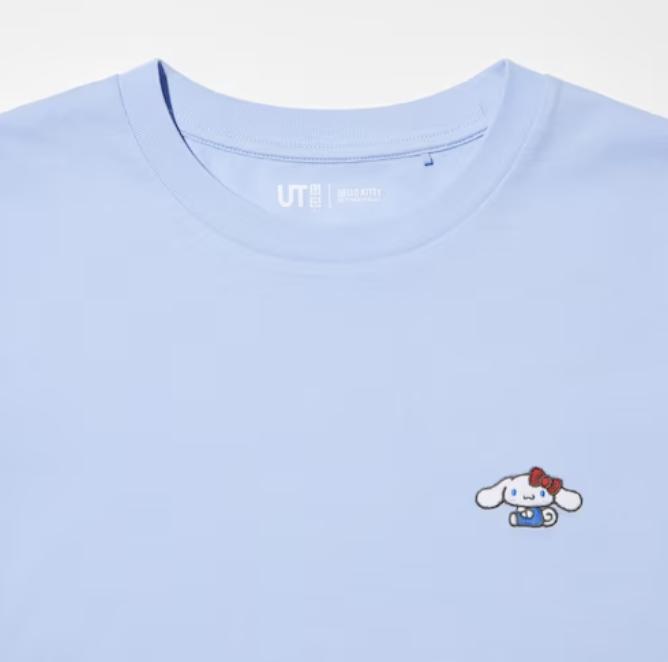 整个系列唯一一件让人能够勉强接受的,是奶蓝色调且正在 cos 玉桂狗的 Hello Kitty T 恤。