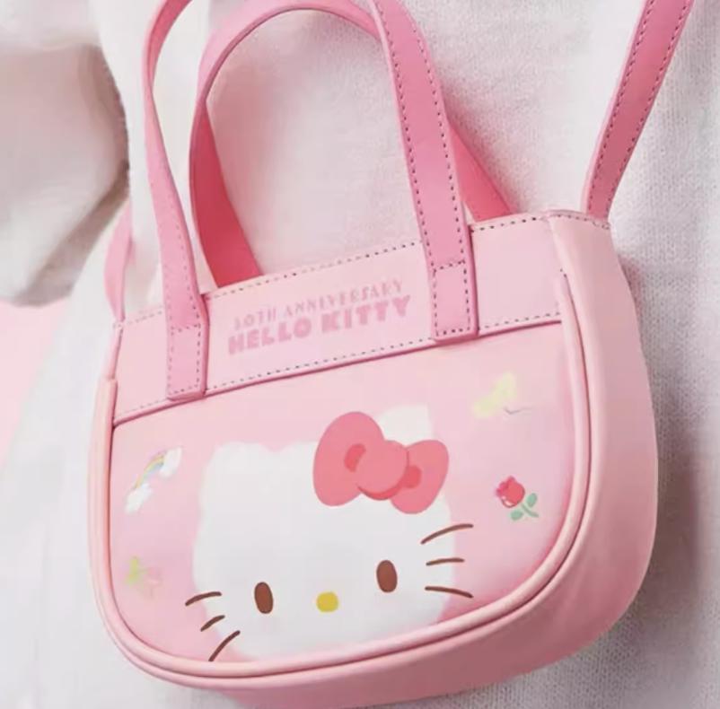 两个以 Hello Kitty 的大头照和全身照作为亮点的手提包,配色围绕着角色去放大,简直是直击粉丝们的少女心。