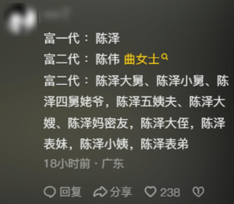 仿佛只要是具备了陈泽亲戚这个要素,在网上就少不了关注度。