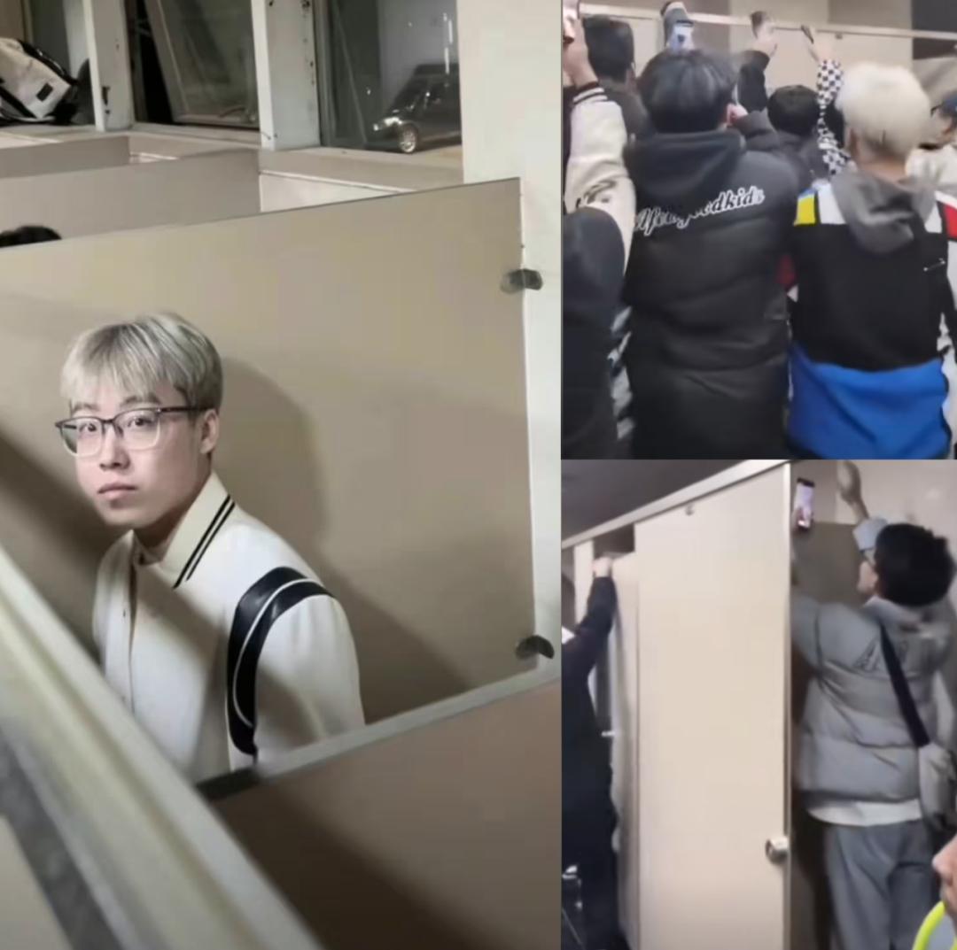 甚至是线下堵门,把厕所围得水泄不通,连陈泽尿尿都要排队拍。