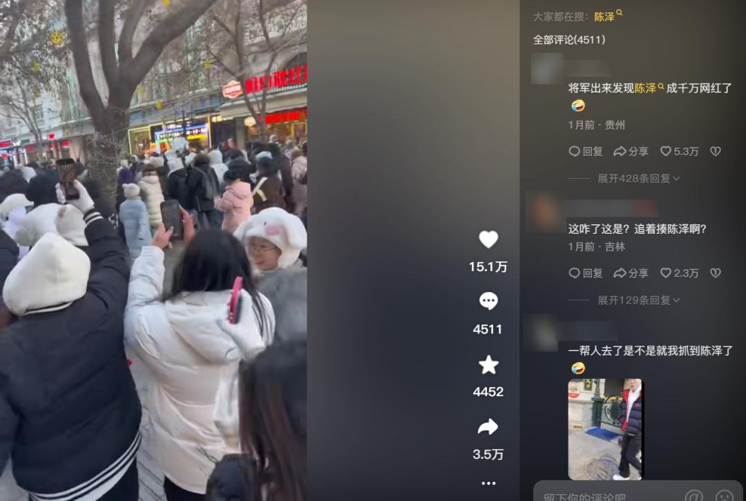 陈泽作为黑龙江人,去年年底哈尔滨旅游最火那段时间,官方安排他在中央大街陪游客打卡。
