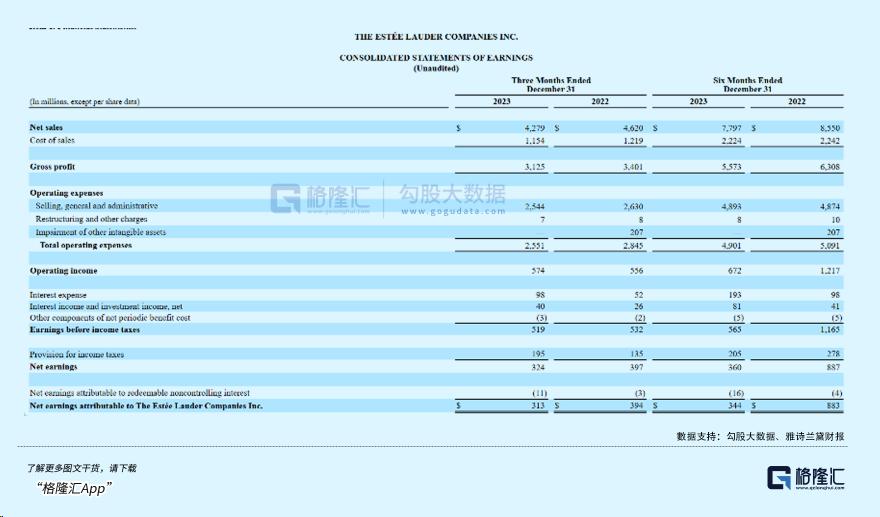 此前,雅诗兰黛发布的截至2023年12月30日的2024年第二季度财报显示,雅诗兰黛的净销售额和归母利润同比仍在下滑。
