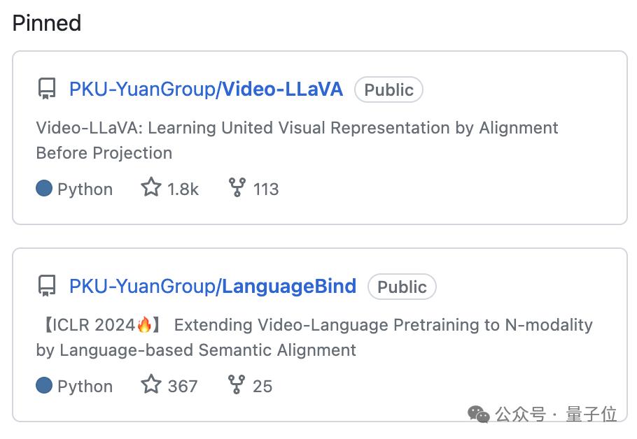 包括袁粒课题组的林彬,他曾多次以一作或共同一作身份参与了“北大版多模态MoE模型”MoE-LLaVA、Video-LLaVA和多模态对齐框架LanguageBind(入选ICLR 2024)等工作。