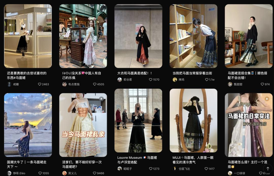 打开小红书,除了中产爱穿的冲锋衣、瑜伽裤,马面裙也出现在日常穿搭相关的话题之下,让小红书女孩直呼“华流才是顶流”。