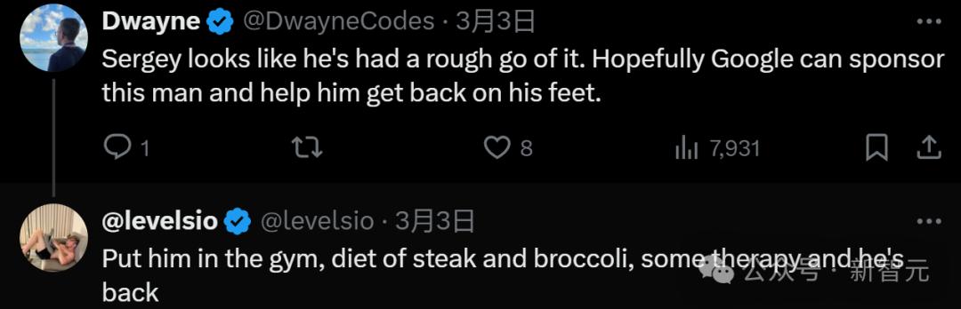 还有网友调侃谢尔盖·布林看上去状态不佳: