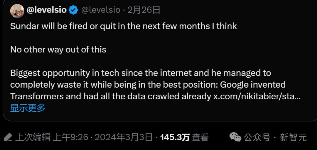 而这次他在公开场合对Gemini这个可能是谷歌近10年来推出的最重要的产品的瑕疵认错,让现任的谷歌CEO劈柴压力拉满。