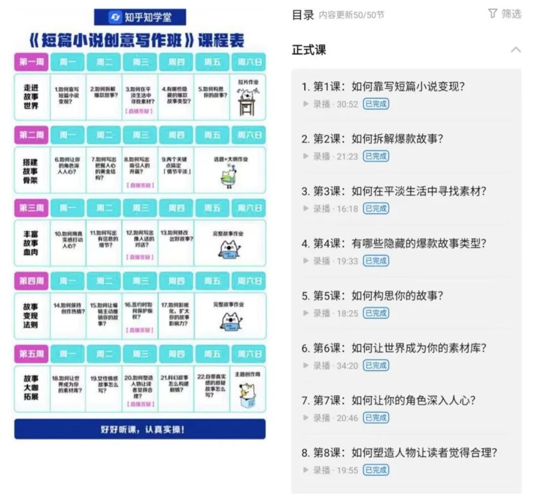 就像知乎故事小说课一样,笔者在正式上课后才发现,所谓的22次课,90%都是录播课,几乎都是对网络上各种公开资料的东拼西揍,签约成功率也完全与宣传的不符,但囿于退费难,最后权当这笔钱打水漂了。