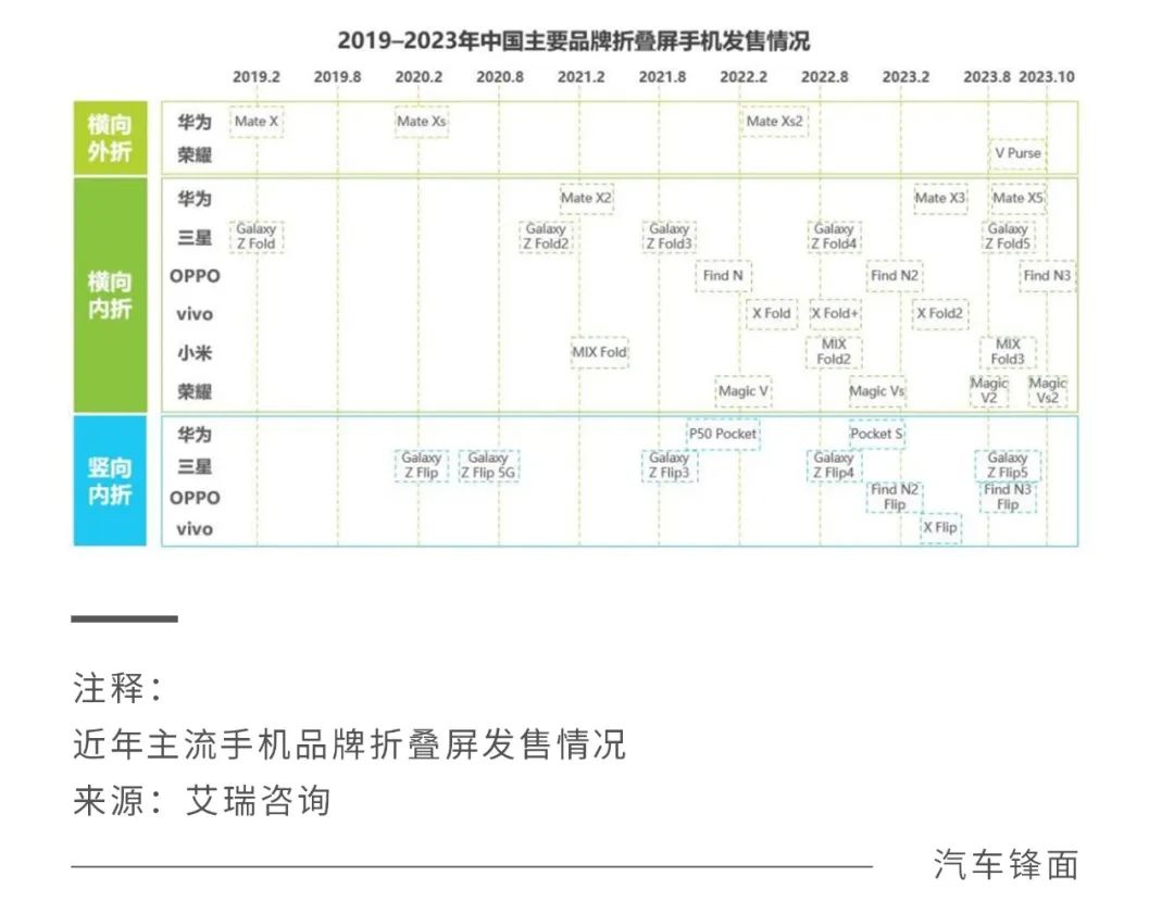 另一边,有传言称,OPPO和vivo将退出竖折叠屏市场,原因是2023年发布的竖折叠产品OPPO Find N3 Flip和vivo X Flip销量不佳。OPPO随后辟谣称,“对折叠屏技术的开发没有任何改变。”《汽车锋面》向vivo求证,截至发稿,并未收到回应。