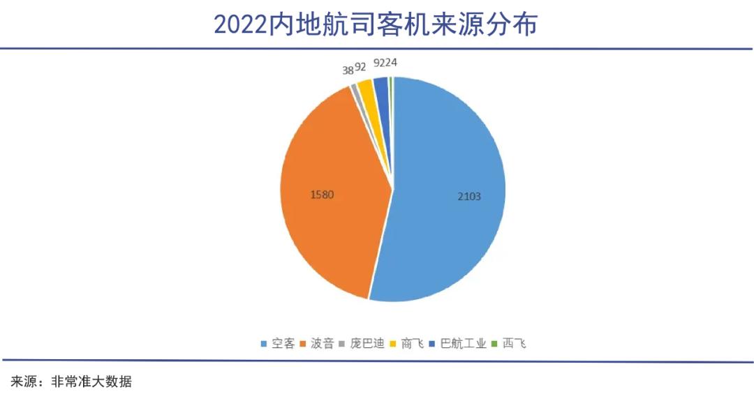 截至2020年,空客和波音两家公司生产了全球75%以上的飞机。我国航空企业执飞机型名单中,你很难看到第三个公司的名字。2022年底,内地航司机队中客运飞机3929架,其中空客和波音的飞机就霸占了94%的市场份额。