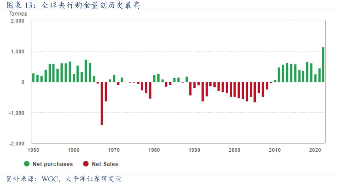 另一方面,真正影响金价是广义上对黄金的需求,即涉及黄金金融属性和货币属性的「投资需求」和「央行购金」。前者可以说是对黄金机会成本的行为映射,是金价中短期波动的主要影响因素;后者是对黄金货币属性的信仰充值和再押注,是逆全球化中货币多极化(去美元化)下的大势所趋。