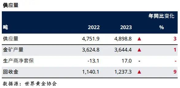 狭义上主要是指和实物金相关的供需。其中实物金供给主要包括「矿产金」和「回收金」,皆相对稳定。
