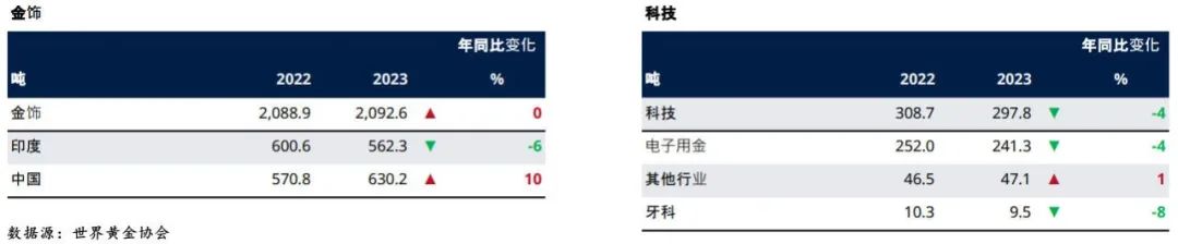 实物金需求主要涉及「金饰需求」和「科技用金」,两者对金价的影响较小。