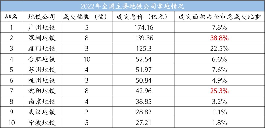 你甚至可以看到,整个2022年,深圳地铁拿了全市38.8%的土地,这样的占比怕是品牌房企也得望尘莫及。