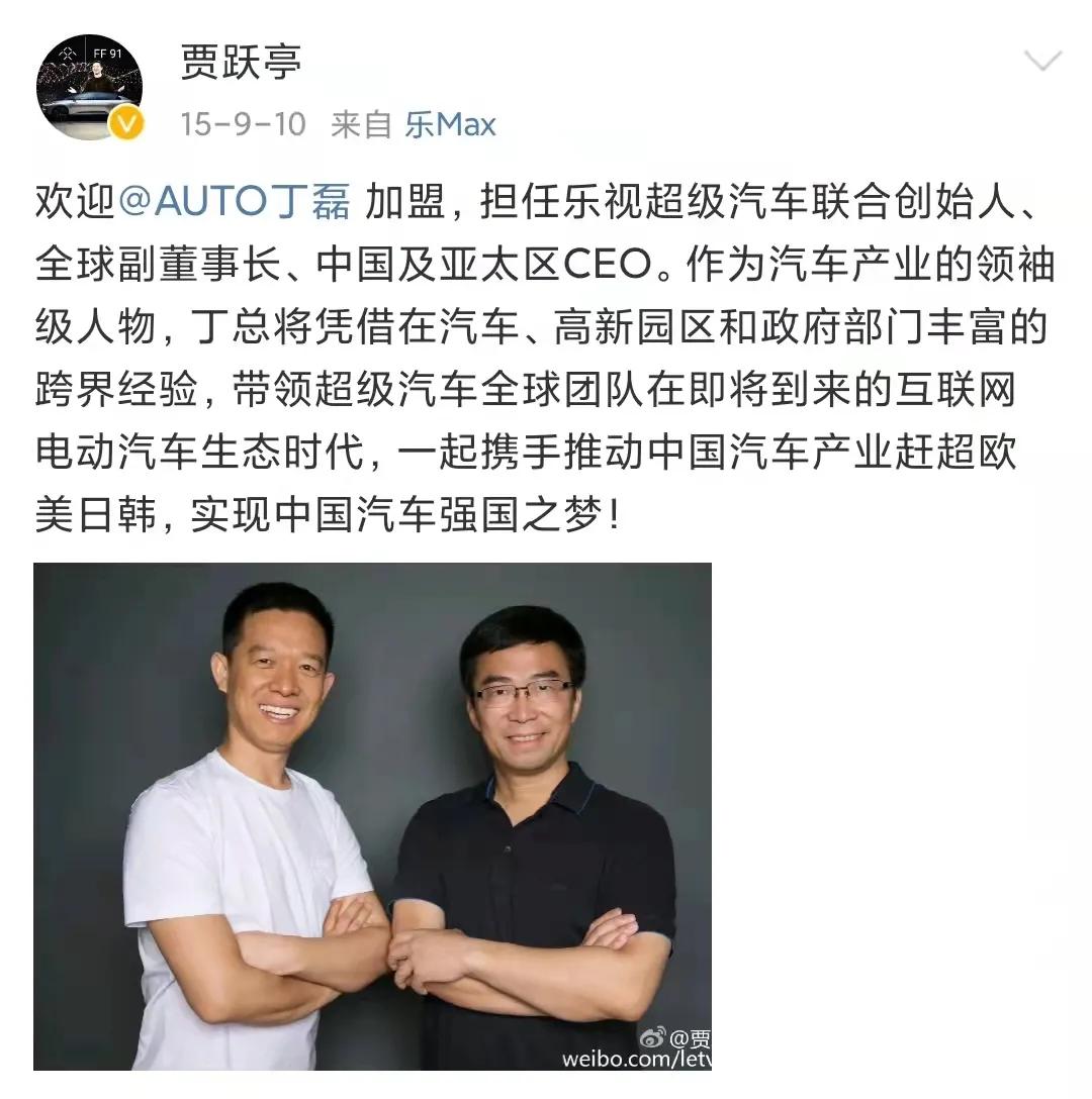 丰富的“车圈老兵”履历,以及政商均有涉及的工作经验,都令急需为公司招揽行业人才的贾跃亭无比兴奋。当年,贾跃亭还蹭发微博欢迎丁磊的加入,并称丁磊为“汽车产业领袖级人物”。