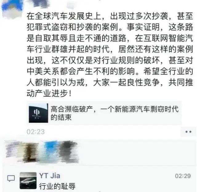 值得一提的是,就在不久前高合刚被曝出濒临破产时,便有一张朋友圈截图揭露了贾跃亭对于高合发表的攻击性评论,称其是“行业的耻辱”。