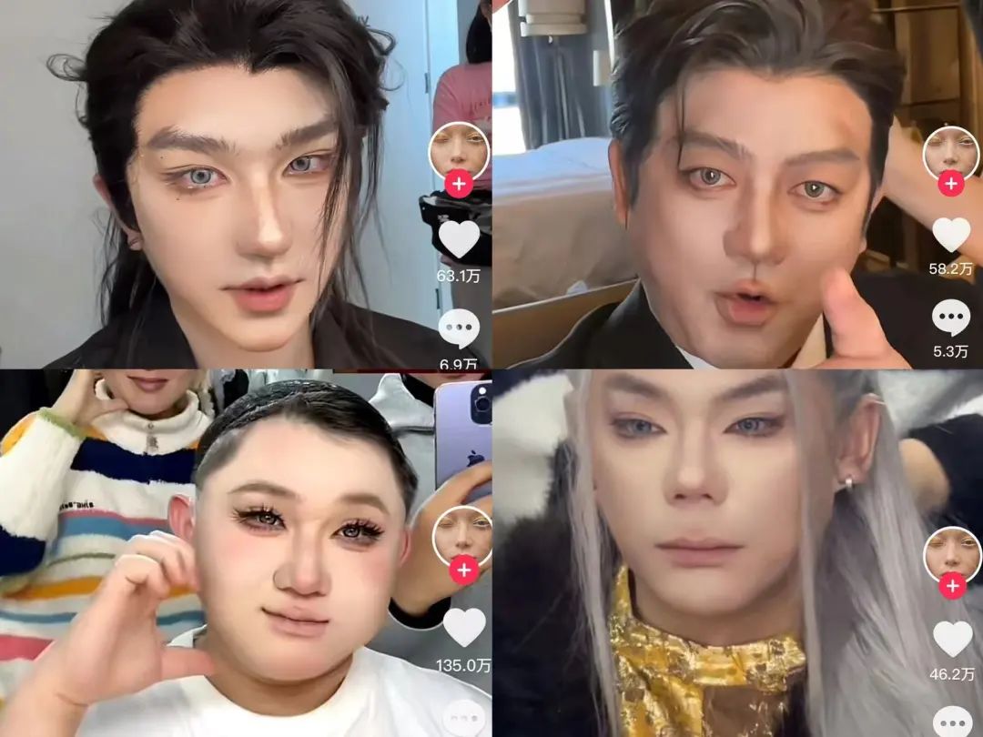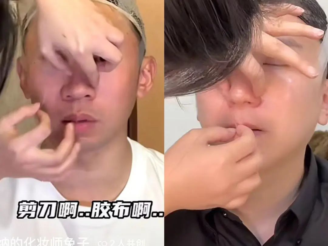 他们虽然标榜是化妆师、造型师等技术型职人,但流水线的操作已经衍生出了一大批同质化账号,并没有什么实质性门槛。像是在化妆师兔子的手下,无论男女老少,都离不开胶带提拉、缩鼻头、厚重的粉底,所有人爆改的结果实际都是同一张脸;甚至兔子并不是视频内容的主角,也鲜少在直播间亲自上手化妆。这种落差不仅减少了更多消费者体验如此妆改的念想,也让一些品牌植入变得无效且生硬。