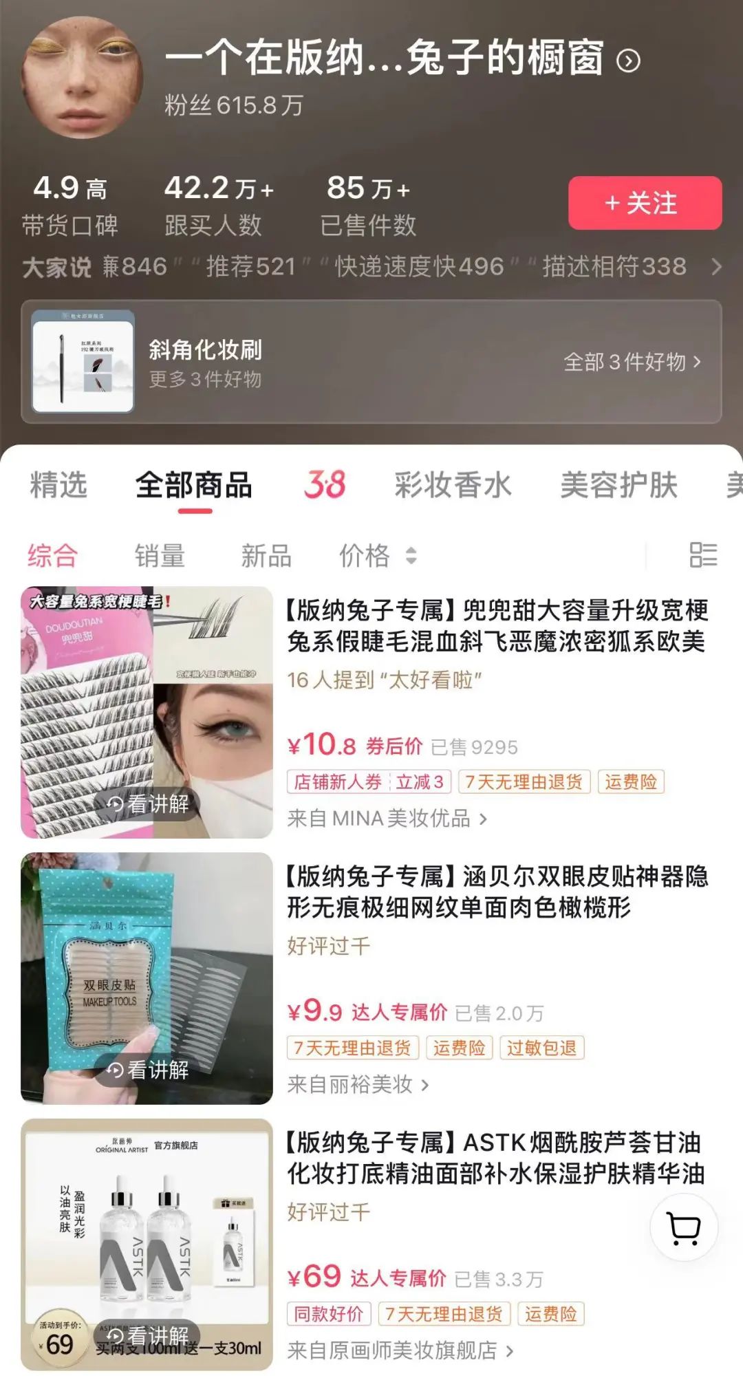 顺理成章的,这样的爆改视频内容,为美妆、护肤品牌的进入提供了天然空间,不少品牌借势在线上吃了一波红利。而化妆师兔子的抖音账号也开启了带货模式,以各类平价彩妆、护肤、美容医疗器械等产品为主,目前出售超85万件。彩棠、自然堂、花西子等国潮美妆品牌频繁在视频中露出,足以证明其流量效应不容小觑。