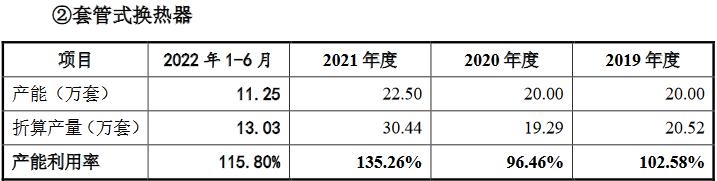 根据招股书显示,2019年至2021年,英特科技壳管式换热器的产能利用率分别为94.7%、100.16%、125.73%;套管式换热器的产能利用率分别为102.58%、96.46%、135.26%。可以看出,英特科技的产能利用率长期处于较高水平,这意味着公司需要扩大产能以满足市场需求。