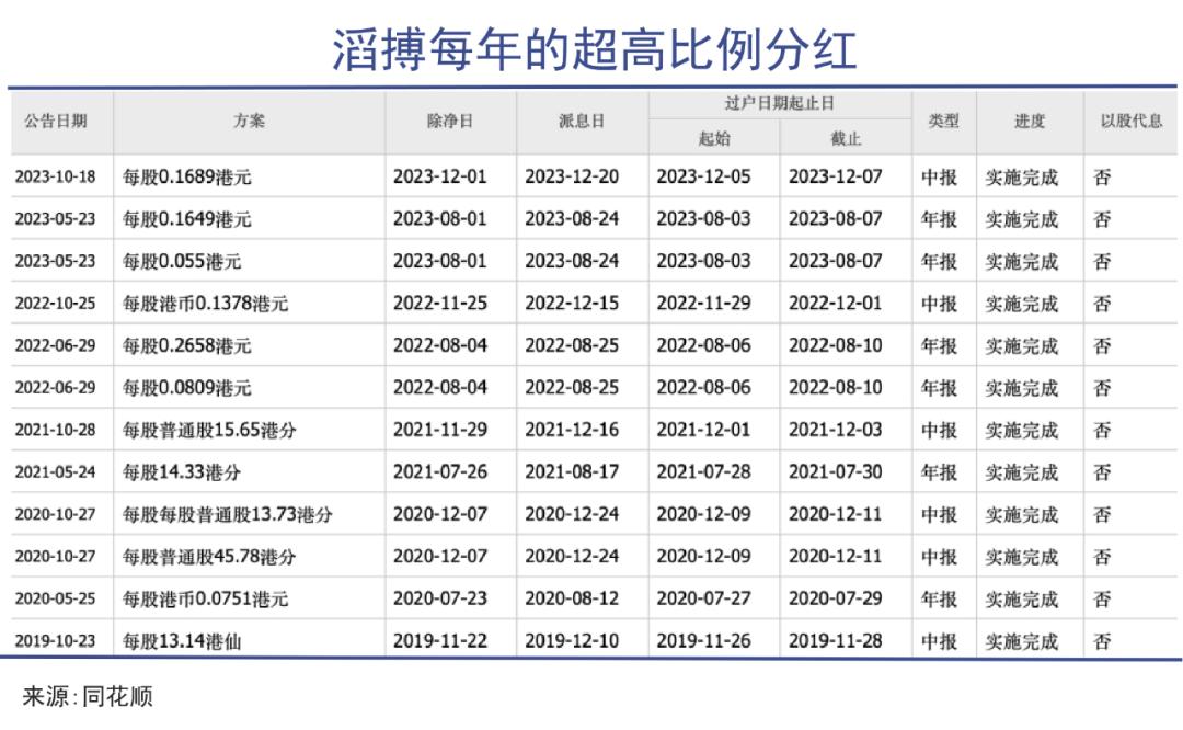 但其资金的来源值得玩味。《巨潮WAVE》翻阅资料发现,自2017财年以来,滔搏不顾一切地向股东保持每年两次的大额分红,共计分享了151亿港元,而同期公司的净利润才156亿元。