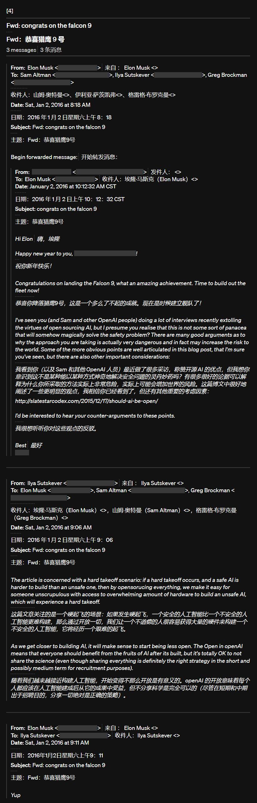 正如 Ilya 对 Elon 所说:「随着我们接近 AI 构建,开始变得不那么开放将是有意义的。OpenAI 中的『开放』意味着,在 AI 建成后,每个人都应从 AI 的成果中受益,但不一定要分享背后的科学……」对此,Elon 回应道:「没错。」