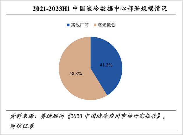 曙光系企业曙光数创是浸没相变液冷领域的“小巨人”企业,公司在2021年至2023上半年以58.8%的市场份额位居国内液冷数据中心基础设施市场第一名,并承担了国家级重大科研装置项目。