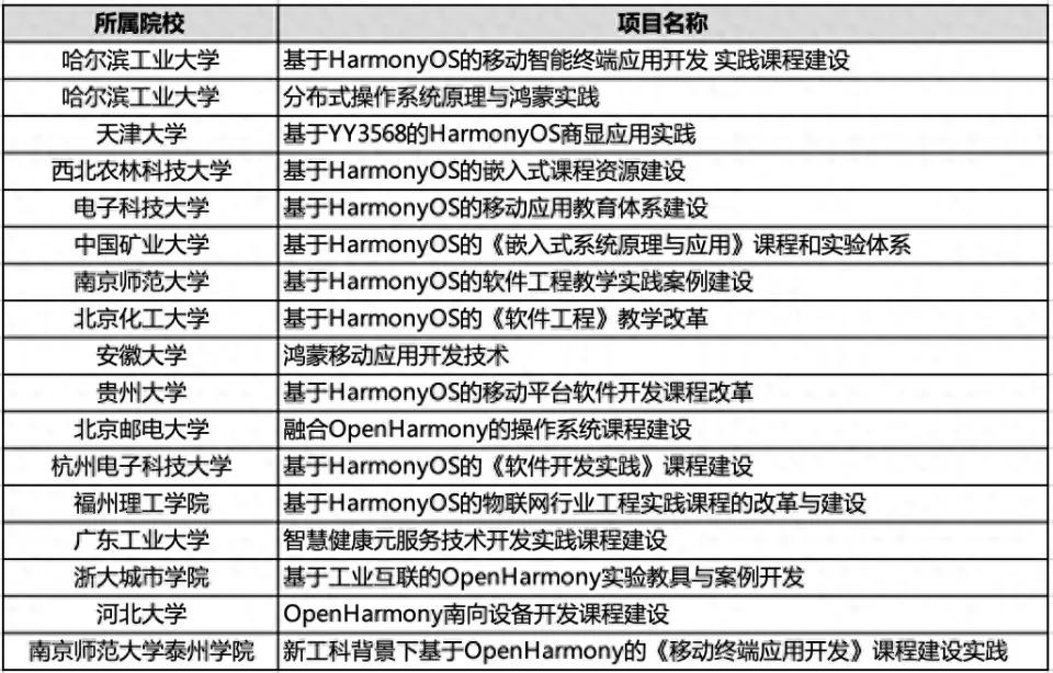 当前,华为已经联合包括清华大学、哈尔滨工业大学、西安交通大学等在内的23家985高校、46家211高校已经或即将开设鸿蒙相关课程。其中,南京大学开设的《移动互联网软件工程》课程中,将HarmonyOS作为课程核心,替换了原有的安卓开发。