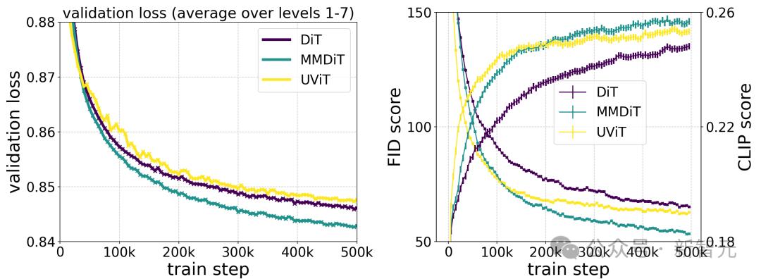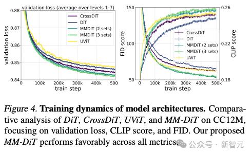 根据作者对不同构架模型的测试对比,MMDiT效果非常好,超过了DiT,Cross DiT,UViT,MM-DiT。