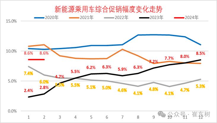 乘联会秘书长崔东树表示,前几年的全国乘用车市场价格战,一般在每年年末比上年末高4个点左右的促销增长水平;但2023年全国乘用车市场价格战持续激烈,达到促销增大6个点的幅度。