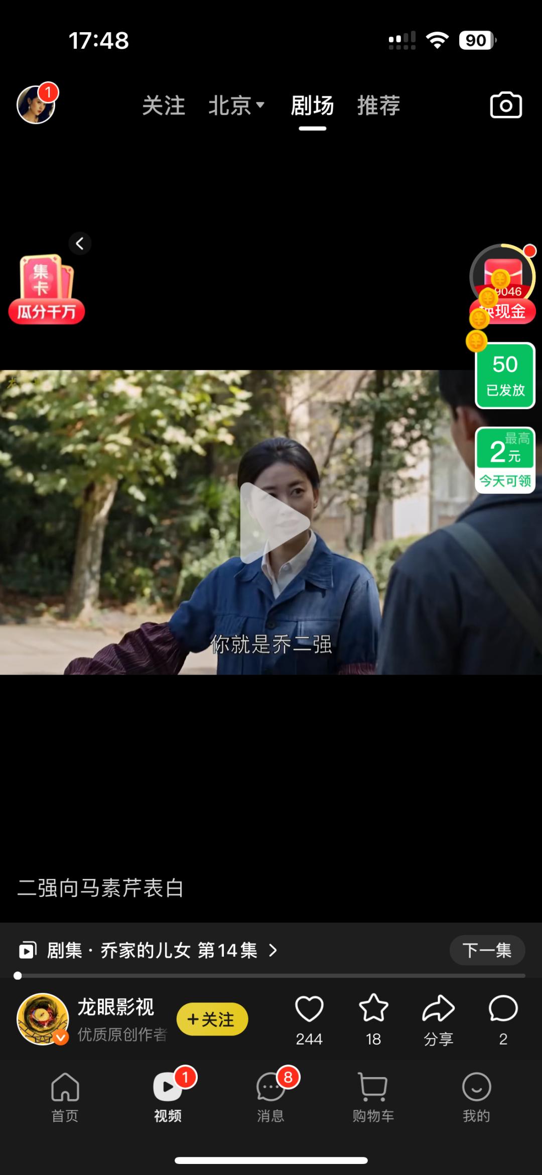 近日,美团针对短视频界面再改版,增设了剧场频道。壹览商业观察发现,美团短视频的入口已从之前的底部Tab栏中心位置移至左侧第二位。美团改版后,短视频页面分为关注、北京(本地)、剧场以及推荐四个频道。现在剧场频道以电影和电视剧内容讲解为主,并且一部影视作品会分成多集讲解,且会形成合集,方便用户连续观看。