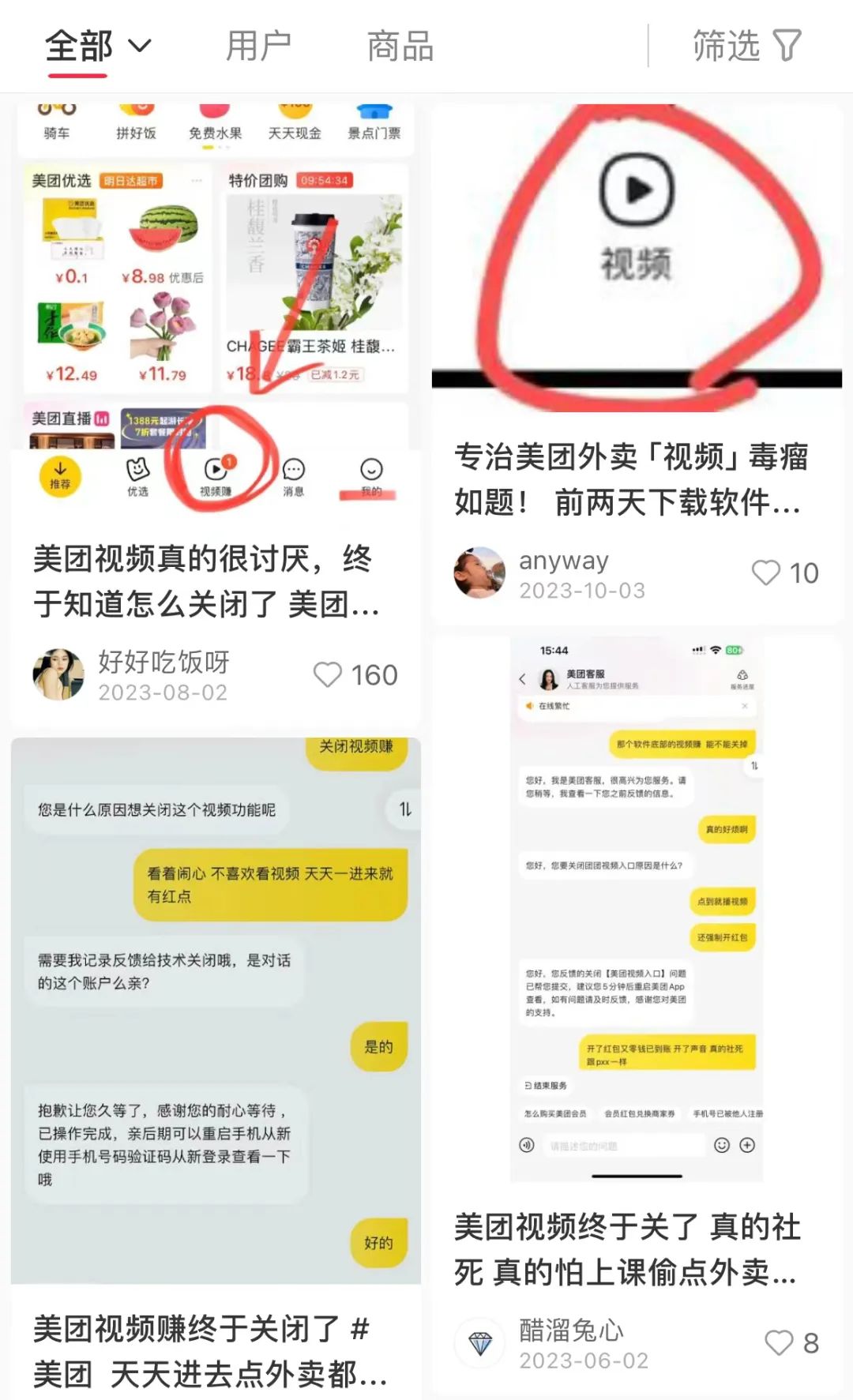 从用户体验出发,美团上线短视频后,小红书平台就出现了大量“怎么关闭短视频”的帖子,“不好好做外卖”本是美团打破流量屏障的第一步,却成为用户砍向美团的第一刀。在大多数用户心里,都会先入为主形成刻板印象。在到店到家业务,用户会首选美团,但在看短视频方面,用户会有自己习惯的平台,想改变用户不仅困难,还会引来反感。