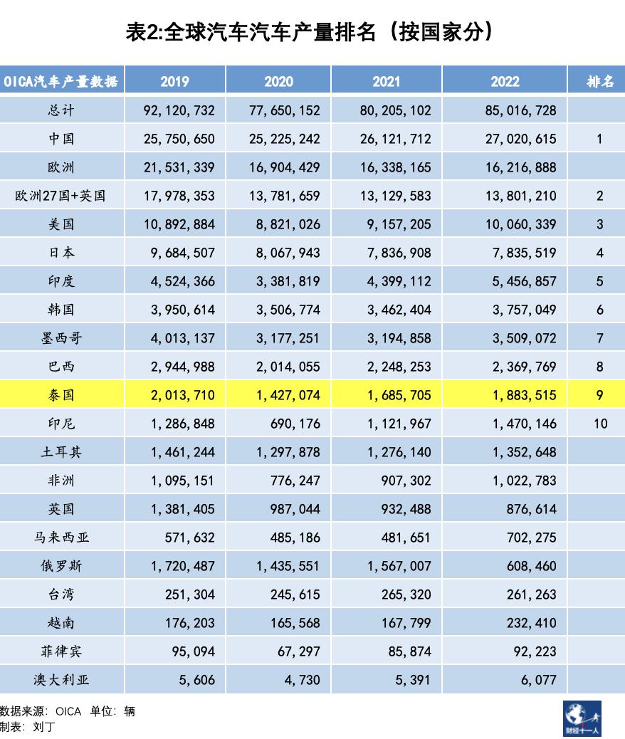 日本在泰国布局了15座整车及零部件工厂,仅次于在中国、美国的数量,泰国也因此成为全球第九大汽车生产国。
