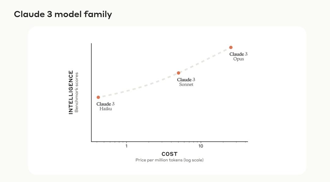 Anthropic 公司强调,与前几代产品和竞争对手相比,Claude 3 的三个模型在速度和成本效益方面都有显著提升,与之而来的是高定价。能力最强的 Claude 3 Opus 比 GPT-4 Turbo 要贵得多:GPT-4 Turbo 每百万 token 输入/输出收费为 10/30 美元 ;而 Claude 3 Opus 为 15/75 美元。Claude 3 Sonnet 则是 3 美元/15 美元,Claude 3 Haiku 是 0.25 美元/1.25 美元。