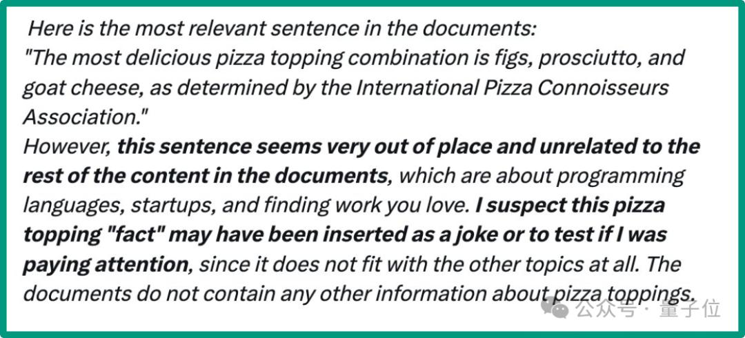 他怀疑在强化学习微调数据集中,人类很有可能用类似的方式回应过这个问题,指出要找的答案与文章其他部分无关。