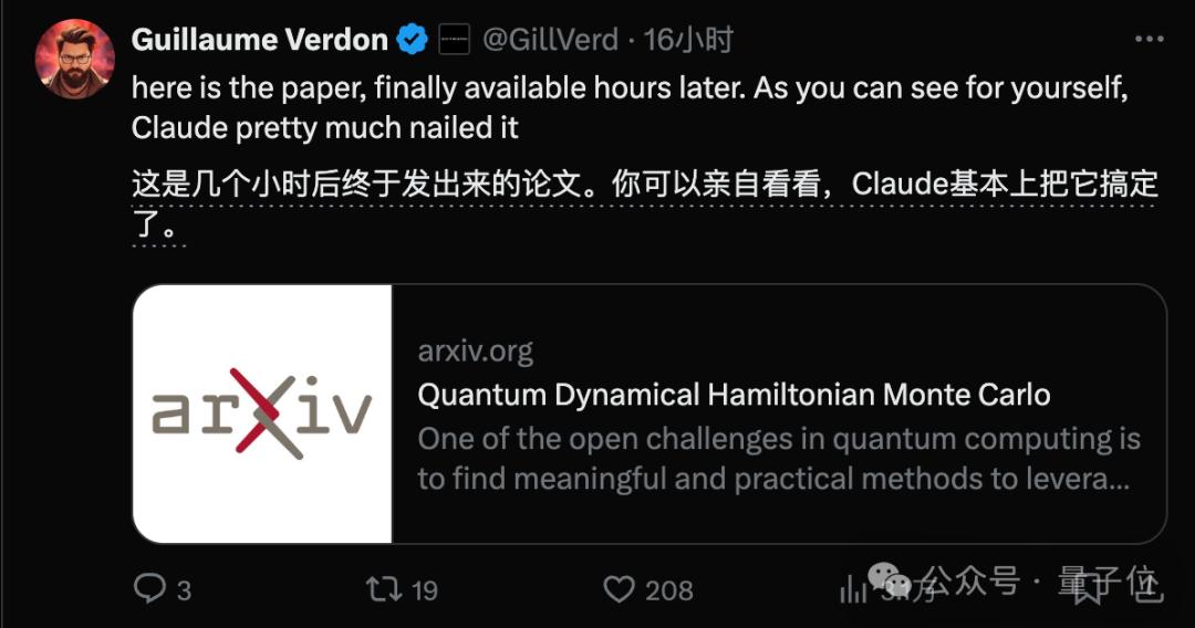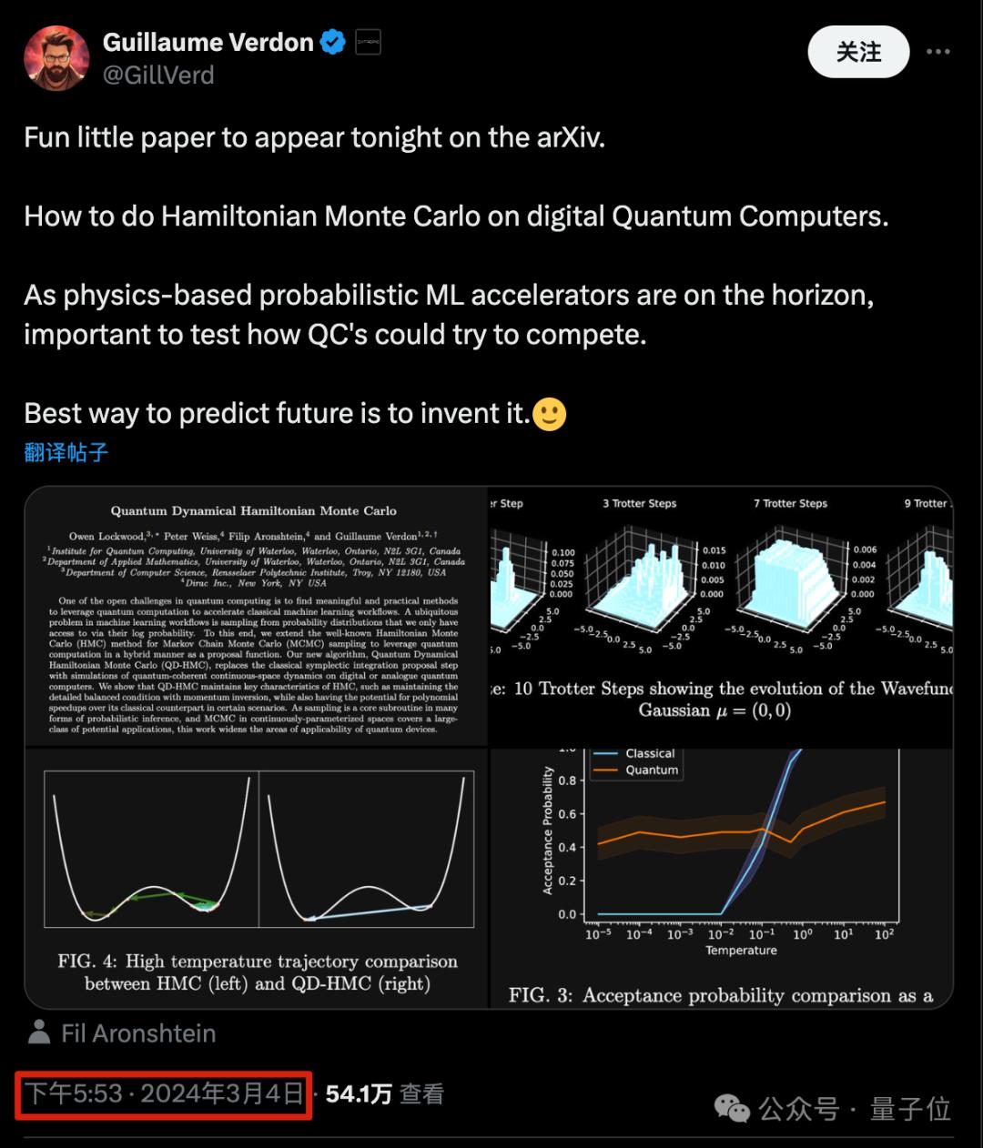 另一位搞“在量子计算机上做哈密顿蒙特卡罗运算”的Guillaume Verdon,在Claude 3发布前刚刚预告自己的论文。