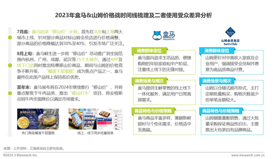 盒马与山姆价格战升级,盒马“移山价”计划成功吸引追求生活品质的部分消费者,与山姆形成一定程度上的错位竞争