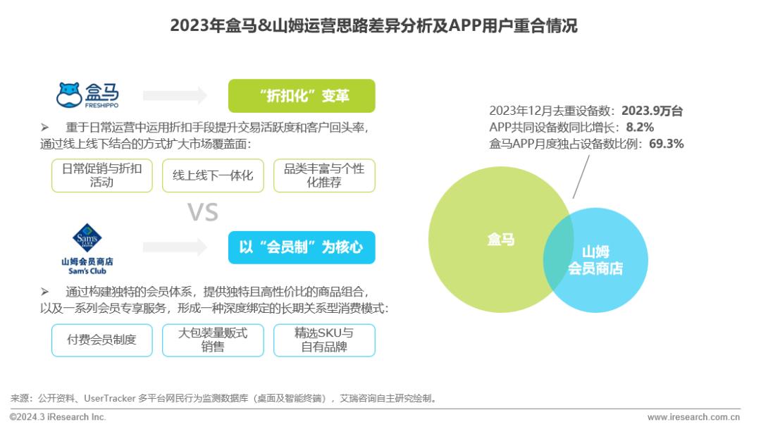 生鲜服务领域中,盒马“移山价”策略引发市场热议,其与山姆会员商店APP的用户重合度较上年同比增8.2%,尽管存在一定的用户交叉,盒马与山姆均通过实施差异化战略,精准识别并成功维系了各自的核心消费者群体,实现了市场份额的稳固;