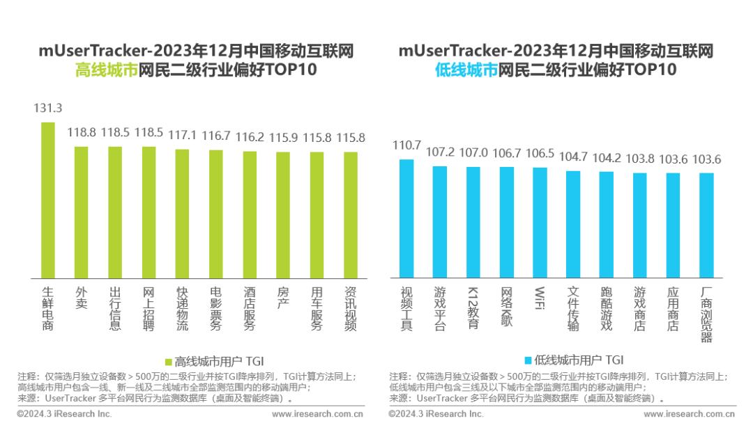 高线城市用户偏好APP类型涵盖日常生活多方面,低线城市用户则对泛娱乐相关、教育类及实用工具类APP偏好明显